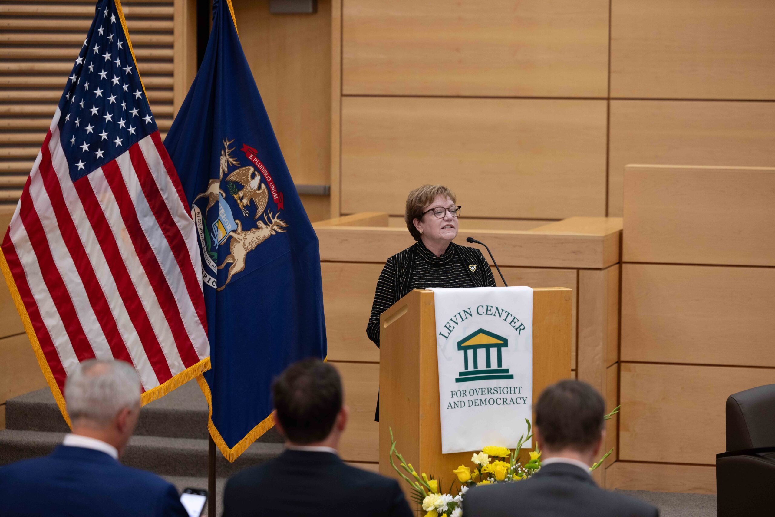 The evening’s keynote was delivered by U.S. Senator Elissa Slotkin, who spoke to her understanding of oversight as a patriotic duty and a cornerstone of democracy. “Questioning power is not some sort of deficit. It is actually patriotism. It makes our policies stronger and more durable,” she said. Slotkin called on leaders to carry forward Carl Levin’s legacy by reasserting Congress’ Article I powers and defending democratic institutions.