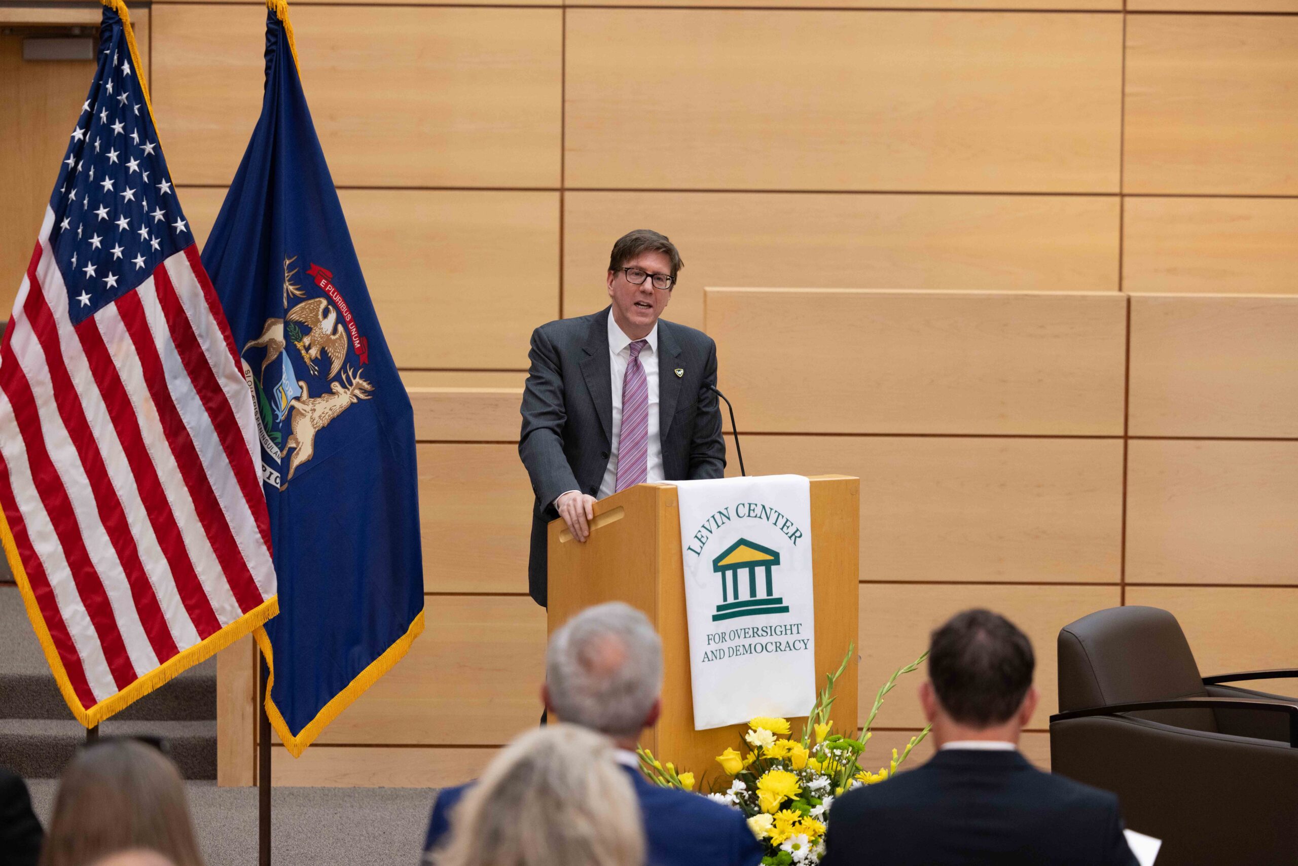 - Provost Laurie Clabo opened by tracing the Center’s founding back to Senator Carl Levin’s vision and the leaders who helped bring it to life.