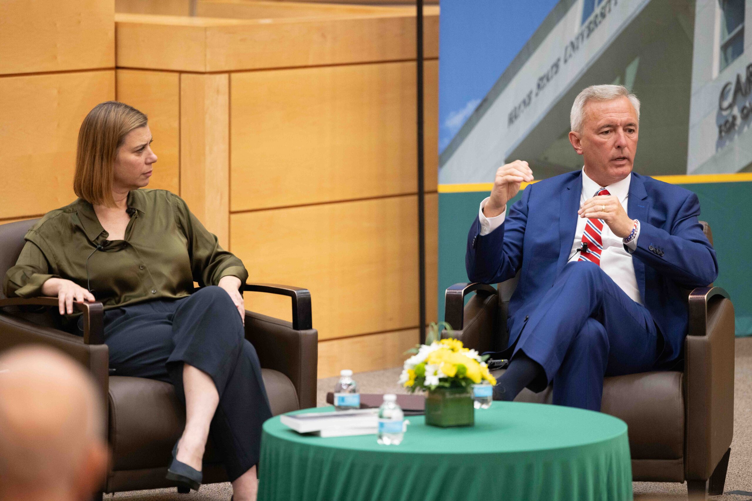 Following the keynote, Senator Slotkin and former U.S. Representative John Katko joined together for a panel discussion on Congress’ role in restoring public trust. Katko emphasized integrity in public service: “Public service is doing the right thing when it’s really tough and especially when no one’s looking.” Together, they reflected on the challenges of bipartisanship, the dangers of hyper-partisanship, and the urgent need to engage the next generation in civic life.